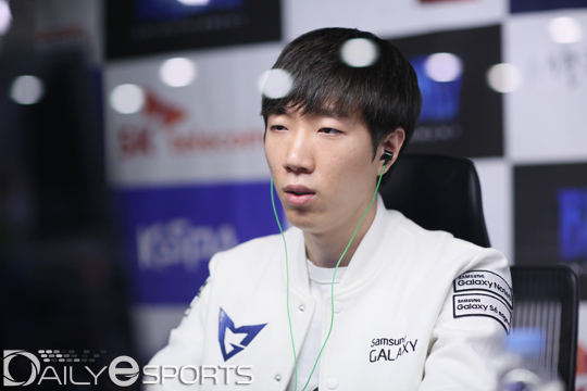 동계용 패딩. 파란색+하얀색 조합이 돋보인다. 팔의 좌, 우측에는 간결하게 삼성 갤럭시 로고만 부착. 배어진이 경기할 때 부스 안에서도 이 패딩 점퍼를 입고 임하는 습관이 있었다. 본인의 말에 따르면 어느 정도 더워야 긴장되지 않는다고.